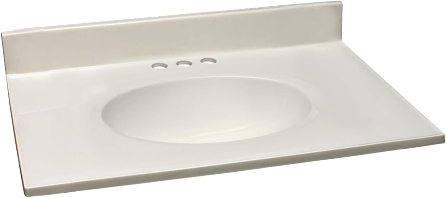 Add a touch of clean, bright elegance to your bathroom with the Design House Cultured Marble Vanity Top. This bathroom countertop is 31-inches long for use on 30-inch vanity cabinets and features a contemporary Ivory Swirl finish. The oval bowl and square flat edge profile offer an updated yet modest look to blend seamlessly with any bathroom decor style. The sink in this single-bowl vanity top has three pre-drilled faucet holes that allow for a 4-inch centerset mount faucet. A single mount faucet with a deck plate will also work with this vanity top. The integrated sink features a a drip-free edge and a safety overflow hole to avoid water overflow or spillage, while the 4-inch integrated backsplash helps prevent water damage to your wall. This bathroom vanity’s modern white marble surface is stain-resistant and easy to clean. Simply apply a mild, non-abrasive soap to the top and use a damp cloth to wipe clean. Designed and manufactured by Design House, the trusted source for quality lighting, hardware, plumbing, kitchen, and bath products for every taste and budget.