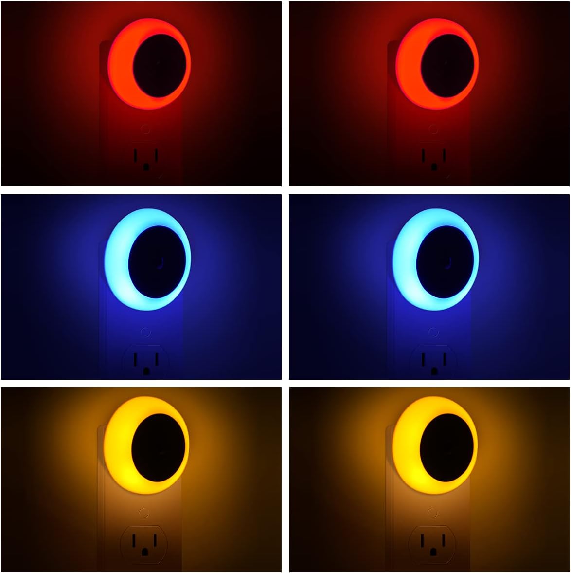 LED night light Diffused light ring emitting just right amount of light without being too bright. Nightlights Sensitive light sensor detecting ambient light level automatically. Easy to install, night light plug into wall outlet and the light will do its work perfectly.Widely application for kids adults bedroom bathroom stairway hallways kitchen, compatible for not only different place in the house, but also for different countries during travel.
