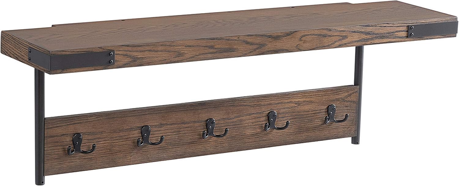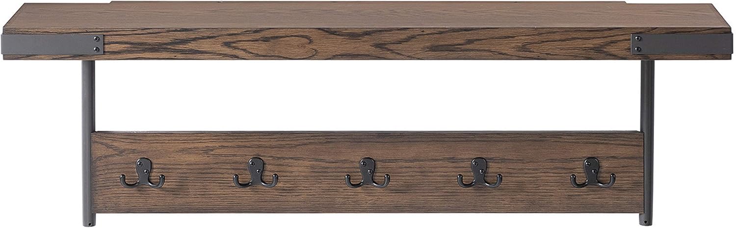 [SPACE-SAVING DESIGN] Maximize your entryway or office space with the Kyra 42″ Oak & Metal Wall-Mounted Coat Hook with Shelf; combines a shelf and hooks in one efficient design, ensuring everything is within easy reach