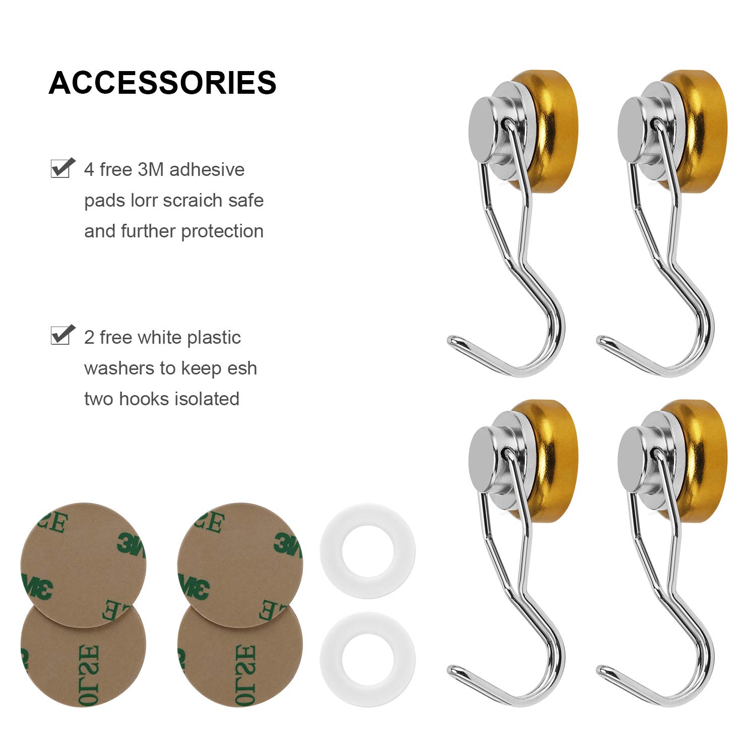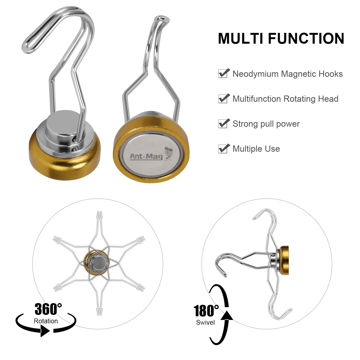 Ant Mag Swivel Magnetic Hooks 50lbs Heavy Duty Grill Magnet Hooks 4 Pack with Scratch Proof Stickers Great for Home Refrigerator Kitchen Store Grill BBQ Office Warehouse (Yellow)