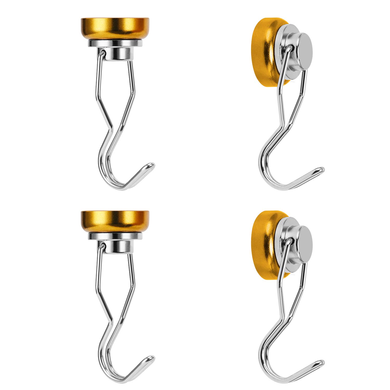 Ant Mag Swivel Magnetic Hooks 50lbs Heavy Duty Grill Magnet Hooks 4 Pack with Scratch Proof Stickers Great for Home Refrigerator Kitchen Store Grill BBQ Office Warehouse (Yellow)