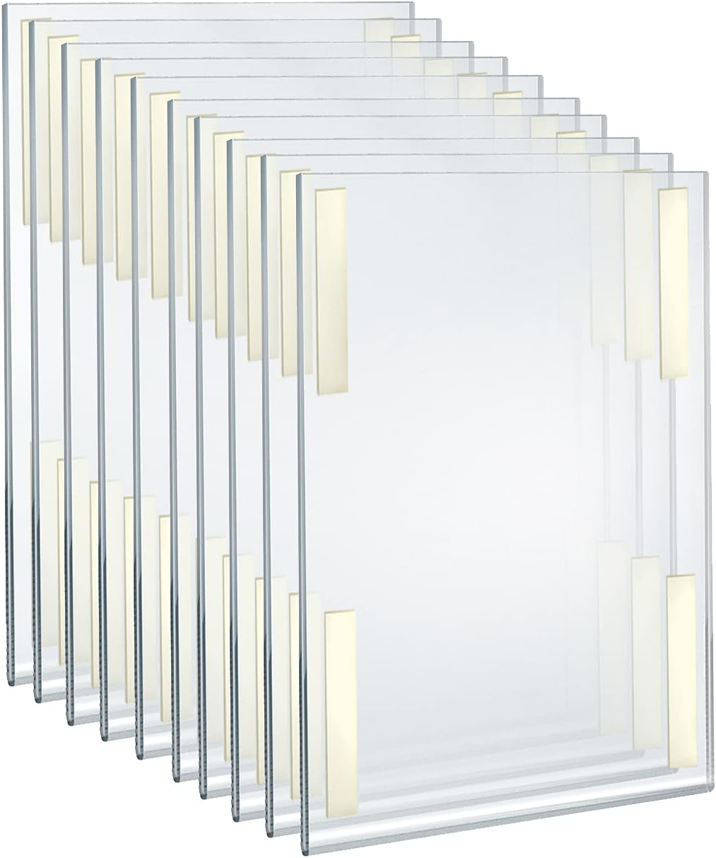 Azar Displays 122032 11-Inch W by 17-Inch H Wall Mount Acrylic Frame Pack of 10 – Clear Acrylic Wall Frame with Sticky Back – Floating Wall Sign Holder – Adhesive Office Sign – Frameless Picture Frame