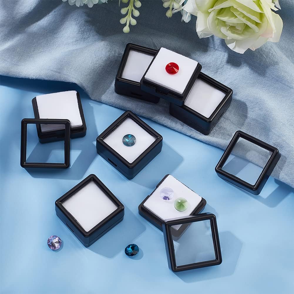 Quantity Size: You will receive a total of 12 black square display boxes with outer dimensions of about 3x3x1.65 cm/1.18×1.18×0.65 inches and inner dimensions of 2.4×2.4 x 0.8 cm/0.94 x 0.94 x 0.31 inches.