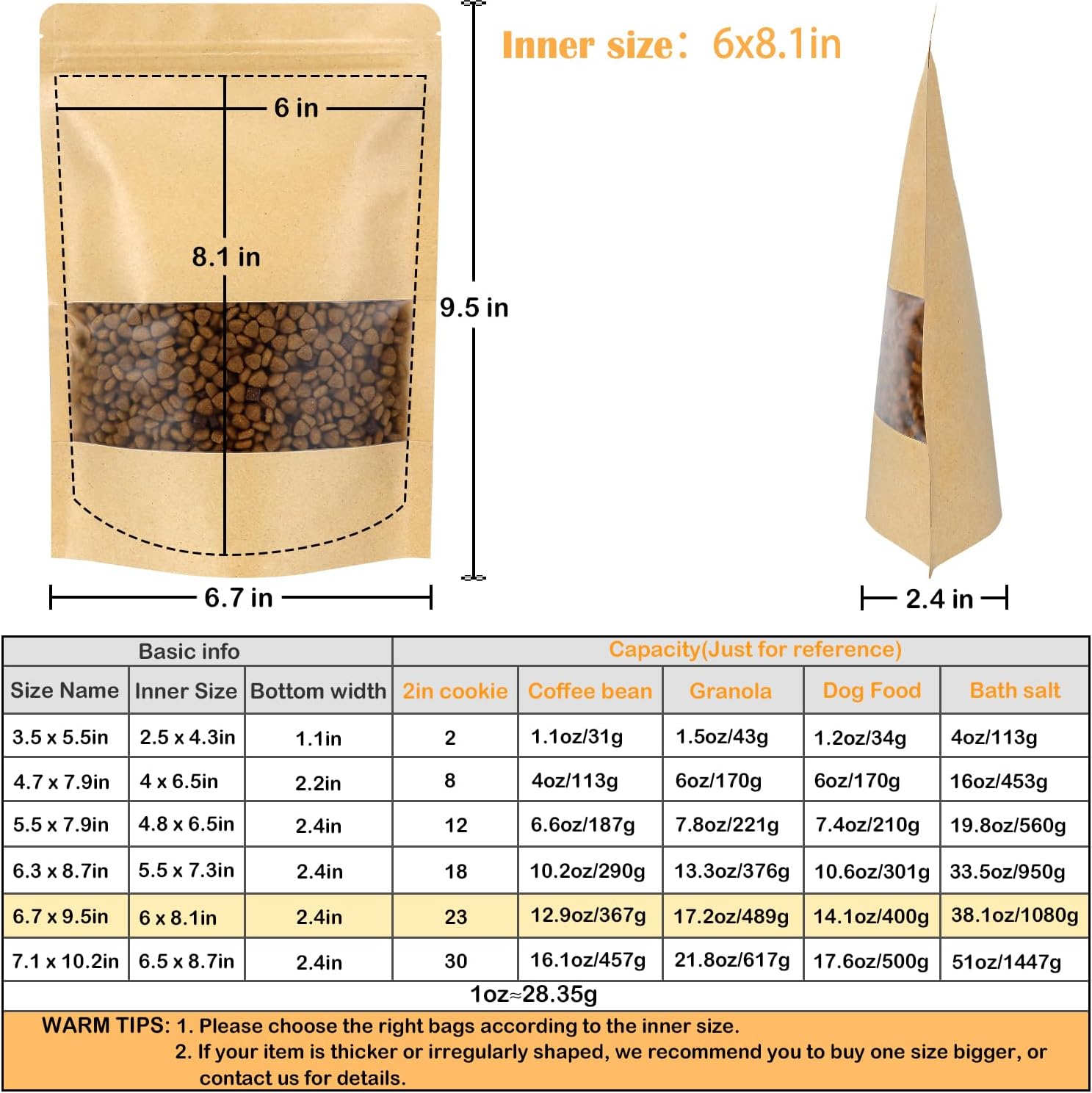 Reliable Kraft Paper Bags: Blisstime self-sealing kraft paper bags are made from food grade kraft paper and PE, which is odorless, reusable and moisture proof, keeps your products freshness. Please purchase according to the usable sizes identified in the picture.