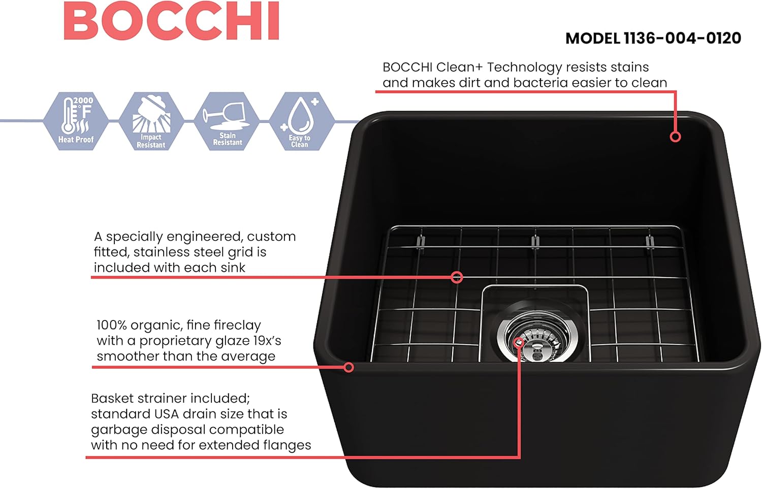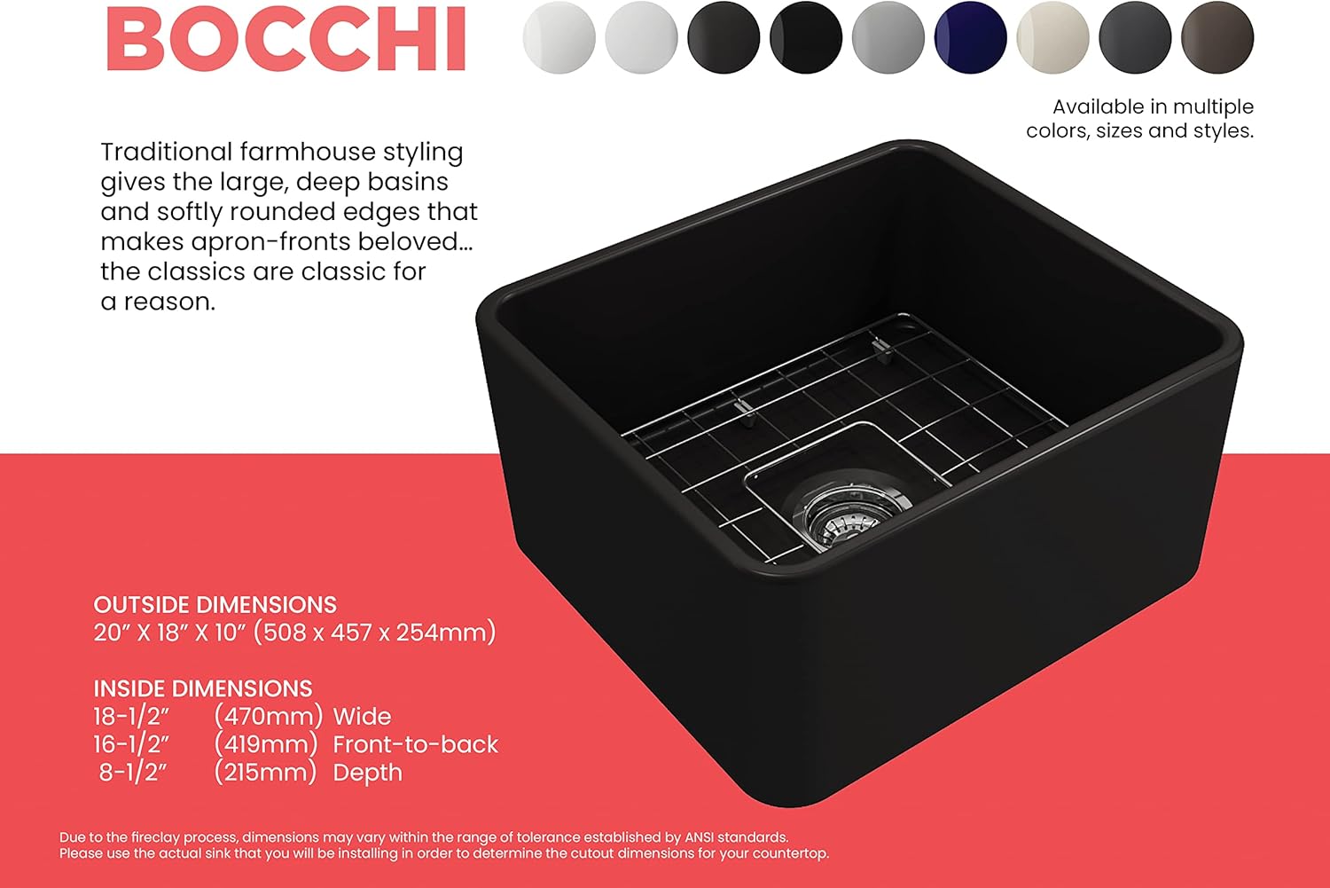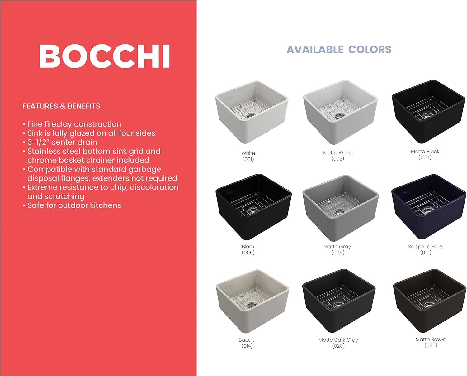BOCCHI sinks bring back the ultimate material to your kitchen. FIRECLAY, a 100% NATURAL ORGANIC and recyclable material used by Craftsman for centuries to create timeless appliances has now returned to your kitchen. With the firing in our Kilns up to 2000°f temperatures, FIRECLAY becomes the most DURABLE MATERIAL used in today’s kitchens. Dealing with extreme heat coming from pots and pans – no problem. Due to their special glaze coating fused with the FIRECLAY body, these sinks have a non-porous, uniform, SCRATCH AND STAIN RESISTENT surface. With its INCLUDED protective bottom GRID and distinctive looks, BOCCHI sinks are truly crafted to match your design and functional desires and beyond.