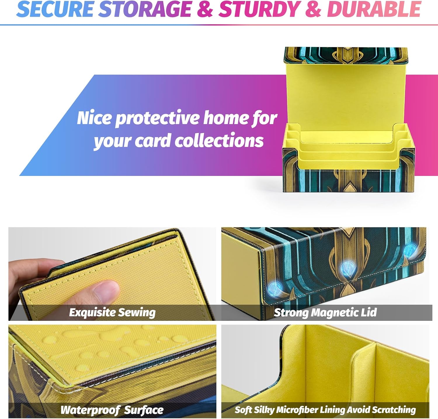 Card Storage Box for MTG, Trading Card Deck Box Holds 1800+ with 6 Dividers, Leather Printing Magnetic Closure Card Storage Case Fits TCG CCG Sports Cards (Light yellow, Key)
