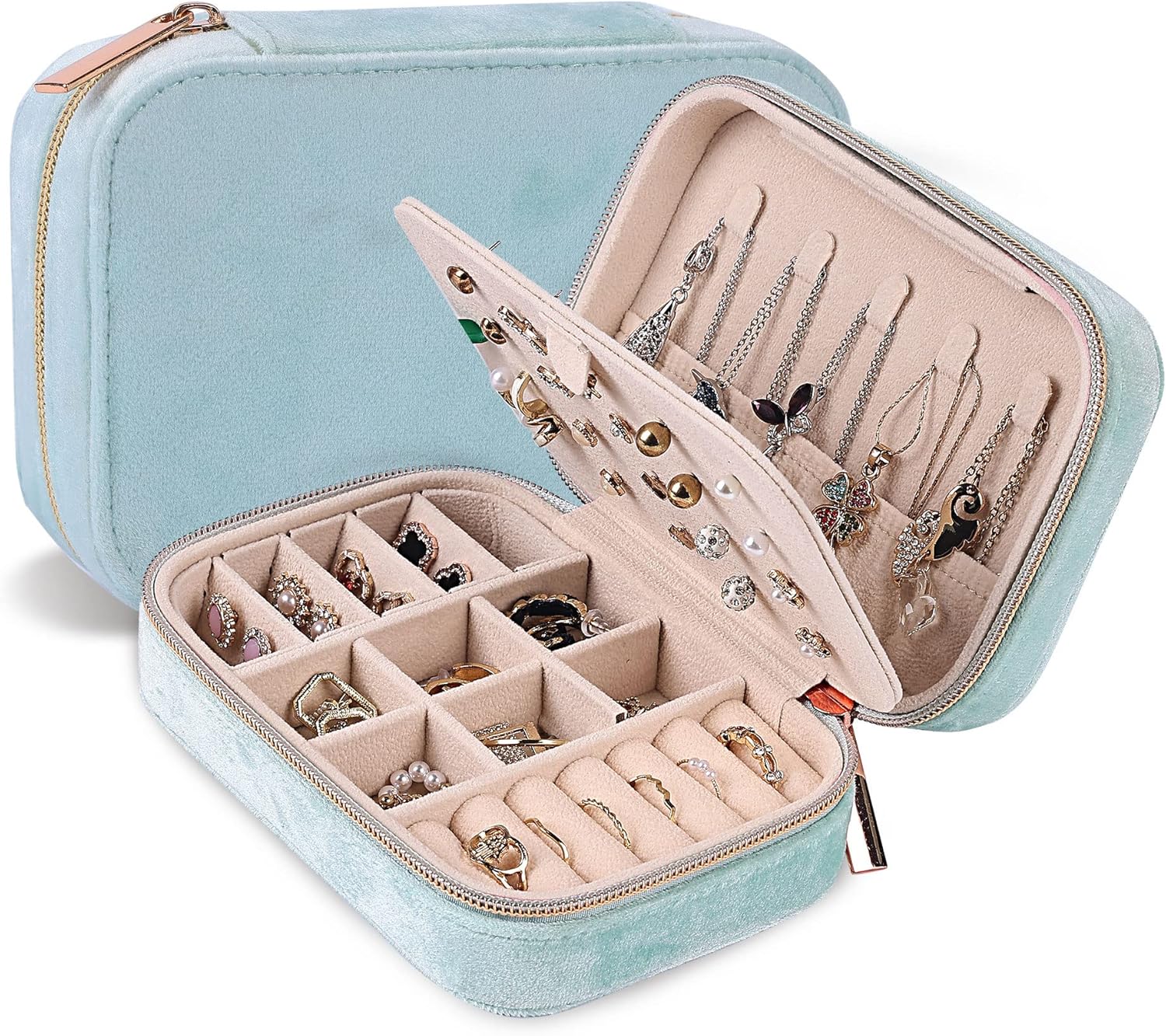 Plush Velvet: This high-quality velvet jewelry box is wrapped in soft, luxurious velvet for an elegant feel. The zipper closure gives our travel jewelry box a classic and stylish look and it’s easy to open and close