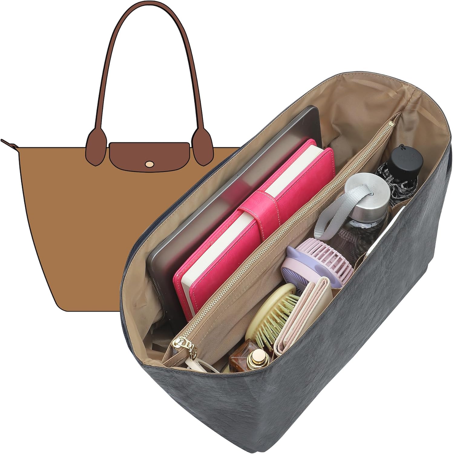 IMPORTANT: This purse organizer insert for tote & handbags is specifically made for large long champ le pliage. If you have a similar tote, double-check the dimensions to ensure compatibility.