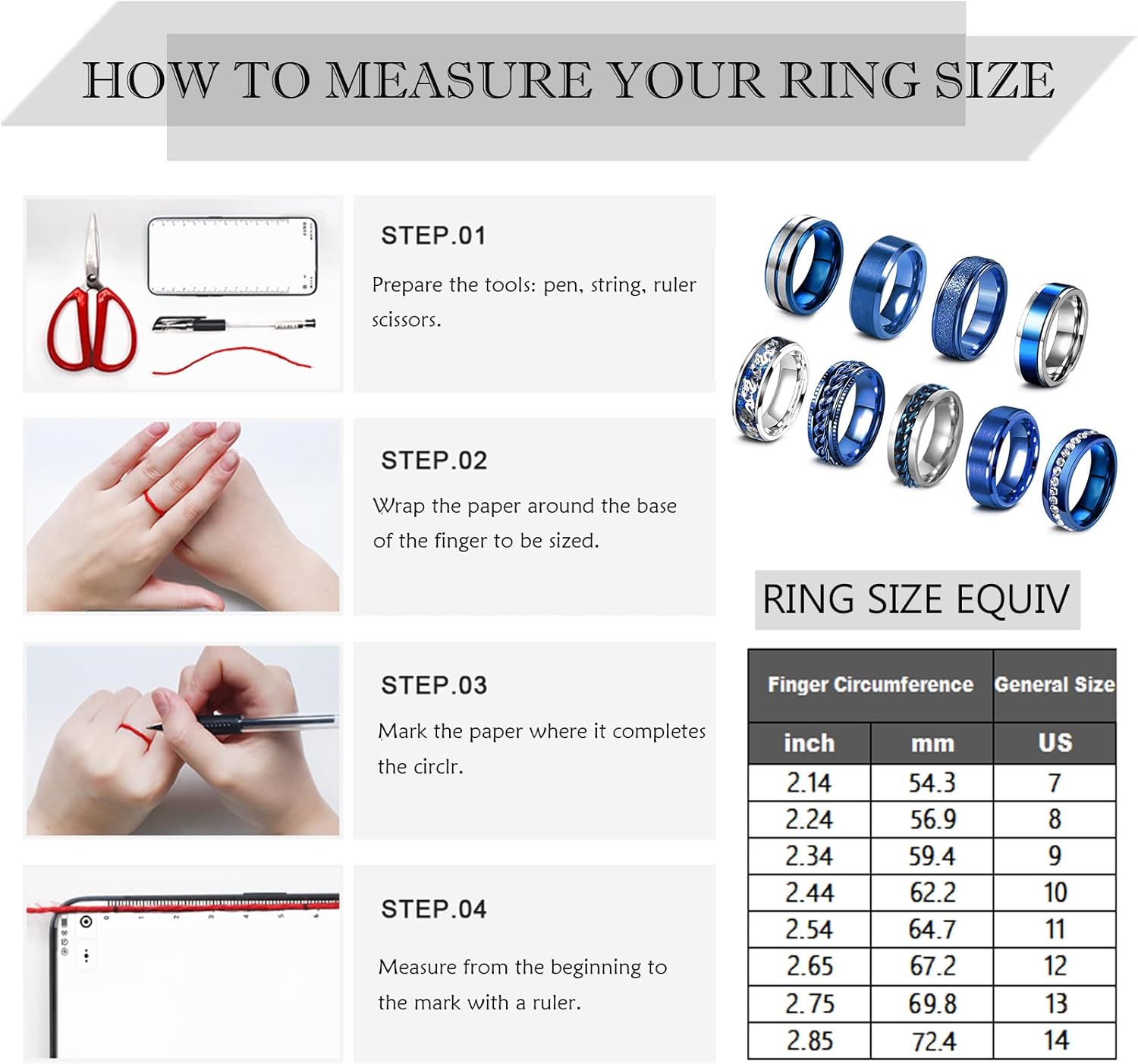 These chain spinner rings set is a wonderful gift choice for people who has general anxiety, prone to fidget and restlessness.8 ring size can be chose: #7 ring #8 ring #9 ring #10 ring #11 ring #12 ring #13 ring #14 ring