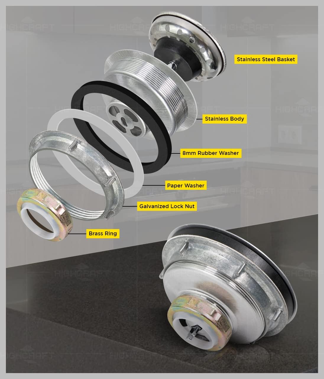 Highly Durable: The Highcraft Sink Strainer is Made of Stainless steel with A extra thick 8mm Rubber Locknut Washer which is Built To Last!