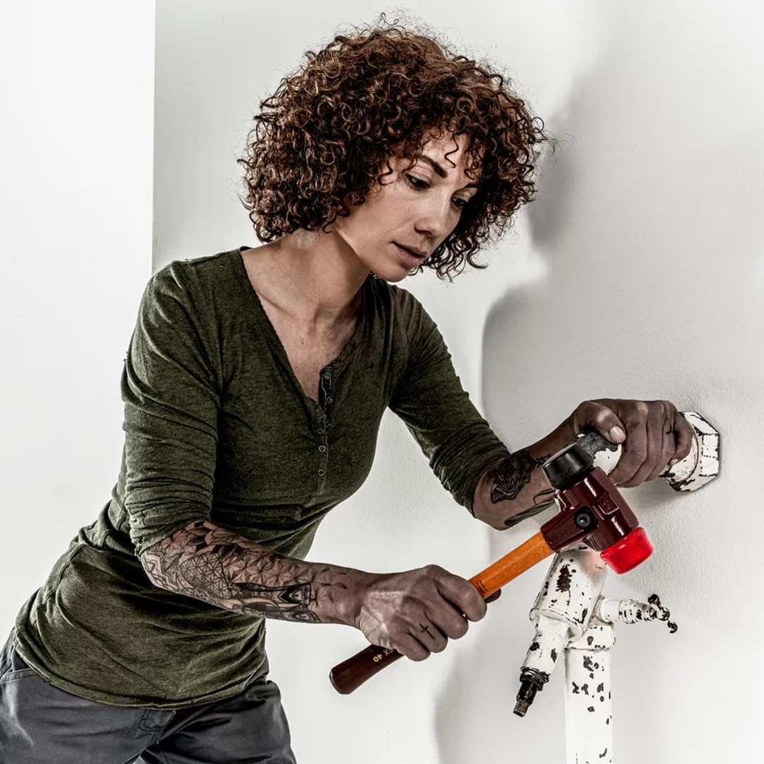 The Halder Simplex Mallet is the signature hammer in the Halder line. This patented hammer has a “split housing’ design that is made from heavy duty cast iron. This split housing allows it to be take apart and the components can be replaced when worn or damaged. It solidly locks in the variety of replaceable insert faces. The faces are made of several different durable materials; from soft rubber to medium hard plastic to hard nylon. Halder also offers aluminum and copper faces for hitting very hard surfaces such as hardened steel (copper faces are only compatible with Halder Simplex with reinforced cast iron housing; call for details). The variety of face materials and sizes allow the Simplex to be used in many applications such as manufacturing, automotive, landscaping, furniture making, flooring, and machining just to name a few. The Simplex features the highest quality hickory handle which is protected by an extra-large overstrike area formed by the cast iron housing. This truly is a durable hammer and will be with you for many years .