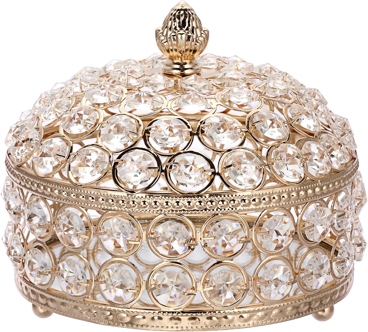 Material: Crystal beads + metal X-Large Size: Diameter: 5.7inches / 14.5 cm; Height: 5.1inch / 13cmColor:Silver, GoldenPackage includes: 1 x Crystal Jewelry Box (Jewelry are not included)