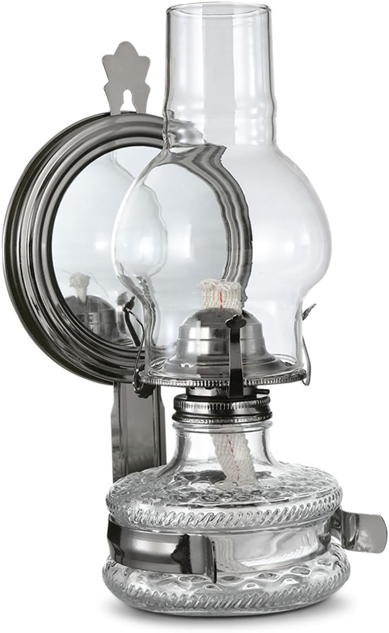 Large Wall Oil Lamp: old lamp is composed of a windproof glass chimney, a glass lamp holder and a metal flame regulator, which is vintage and beautiful, suitable for tabletop decoration, light up your home decoration; Warm note: the lamp oil is not included.