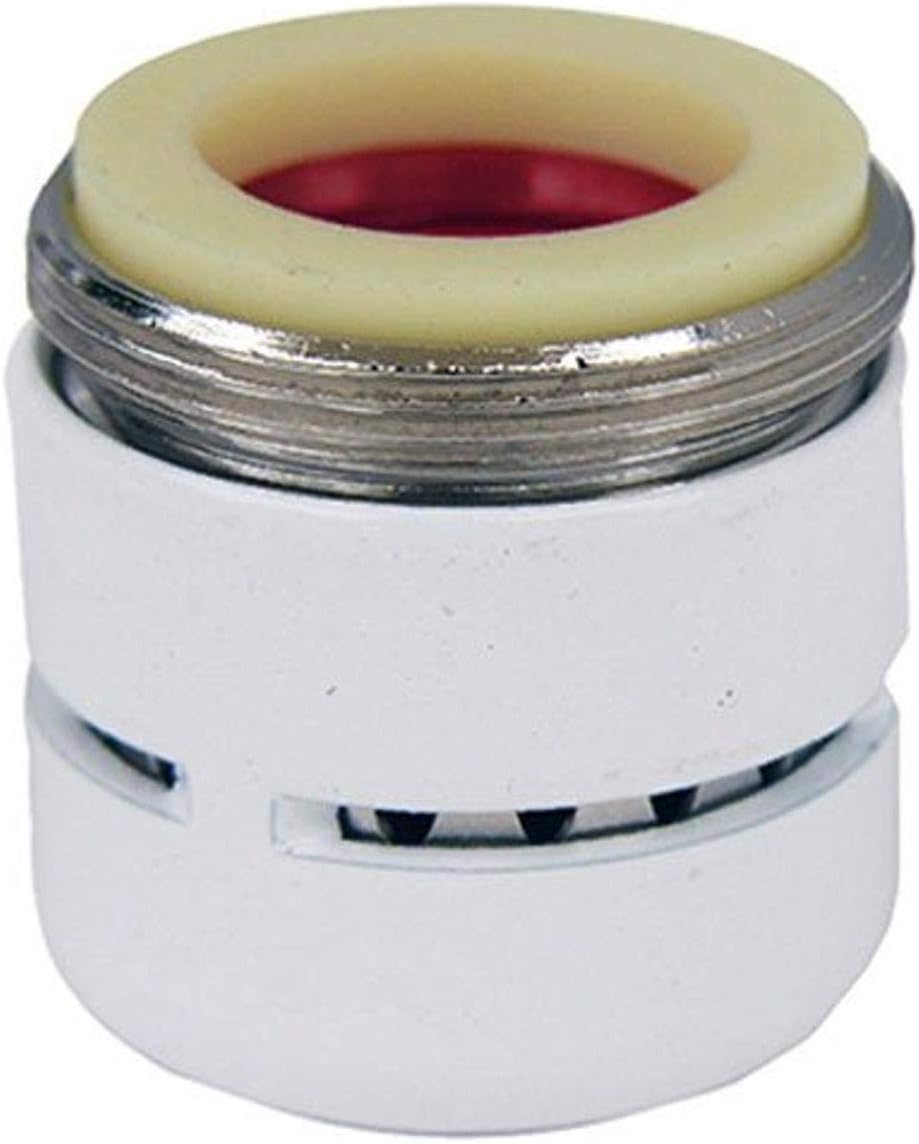 LASCO 09-1975 Dual Thread Faucet Aerator White. White finished metal. Deluxe slotted ,dual thread. 55/64-inch X 27 female X 15/16-inch X 27 male thread. 2.2 GPM at 60 PSI. Meets federal low lead requirements.