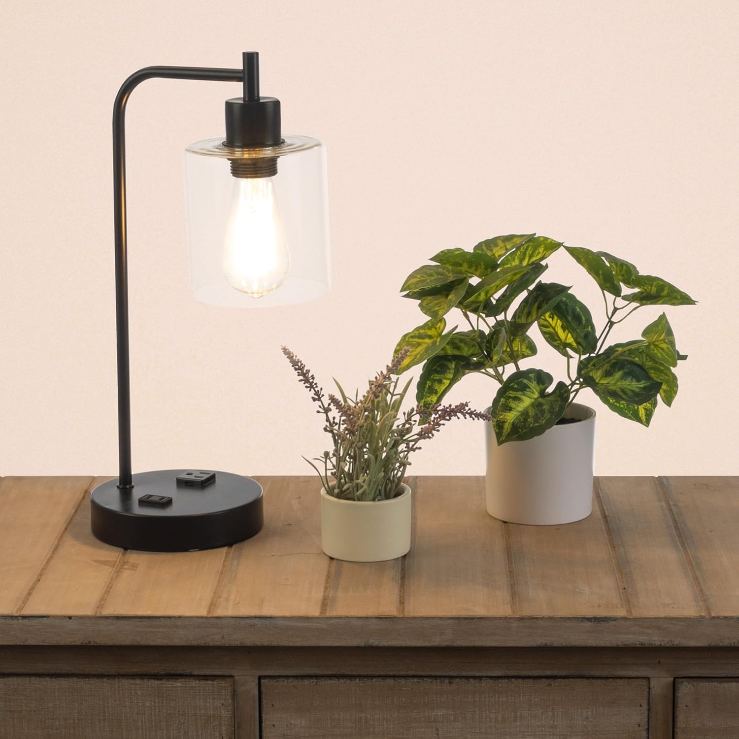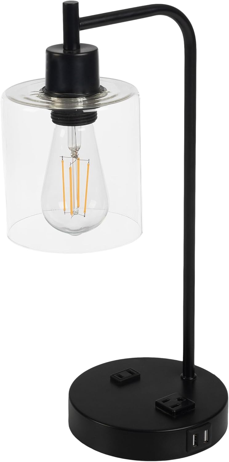 Illuminate your living room, bedroom, entryway, or home office with the Lamps for Living Room by Lavish Home. This desk lamp features an attractive black finish with a glass shade as well as an included LED Edison lightbulb for a modern appearance in any room. The lamp for bedroom comes equipped with 2 USB charging ports as well as a 2-prong AC power outlet and a 3-prong AC power outlet for functional room décor and turns on/off using touch control. Use the Lavish Home table lamps on your desk in your home office, as bedside lamps, in the hallway or entryway, or on an end table in the living room.
