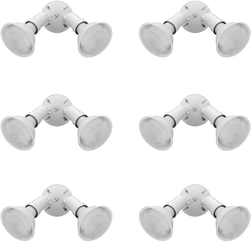 Lithonia Lighting Outdoor Flood Light Fixture, Adjustable Twin Par Flood Light Holder, Safety and Security, 120 Volts, Uses 2 Lamps Up to 150W (Not Included), White, 6-Pack (OFTH 300PR 120 WH CP6 M4)
