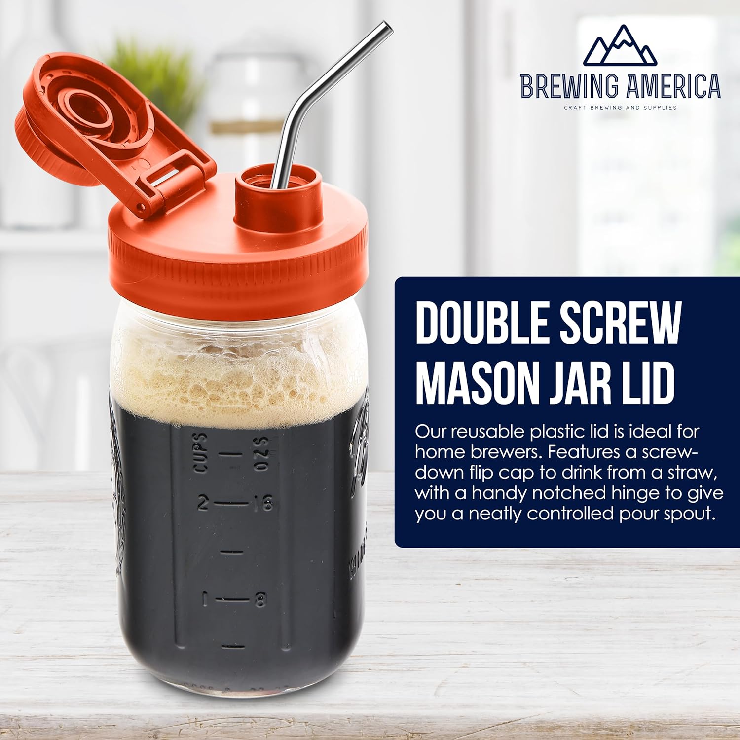 At Brewing America, we don’t just sell home brewing products, we are homebrewers with a passion for the craft. We back our products with extensive research and a desire to provide other beer brewers, whether novice or master, with excellent quality for the best value. It is our mission to provide our customers with a line of innovative products that will encourage you to embrace the joy of brewing, so we can grow our Brewing America family. With that mission in mind, we know you will love our Wide Mouth Mason Jar Lid. Proudly Made in America. Double screw lid Secure liquid storage for beer, lemonade, iced tea, honey, and more. Handy drinking cap with a notched hinge for an easy, neat pour. Drinking cap easily accommodates a straw. Lid hole will fit a fermentation airlock bung. Versatile food storage uses for wet or dry food and grain. Durable plastic for long term use. Easy clean removable silicone seals. Use with our newly-launched cold brew system. Cleaning Instructions Brewing America growler style pour lid comes complete with two silicone seals installed. Always use the lid with the seals. The seals can be removed as needed by using your finger or a dull instrument to lift the seal out at the notch. Easily reinstall. We strive to offer the best in quality, made in the United States of America. We offer a lifetime, unlimited warranty, and stand behind our inspired line of products. Buy now with pride and confidence.
