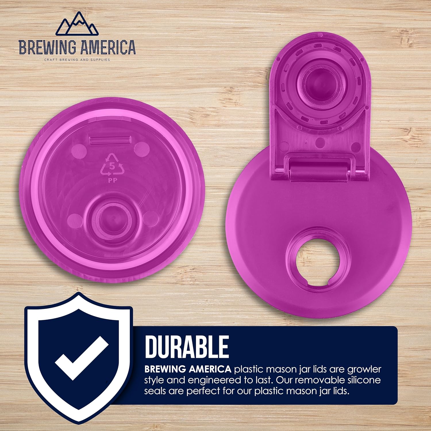 Durable. Brewing America plastic mason jar lids are growler style and engineered to last. Our removable silicone seals are perfect for our plastic mason jar lids. Even retains carbonation.