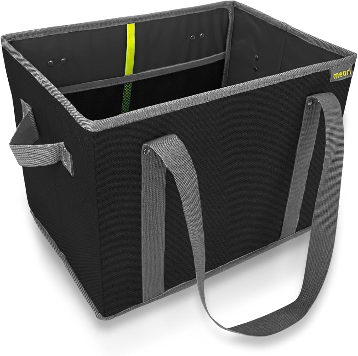 PREMIUM MATERIALS: Made with tear and dirt resistant polyester, double stiching and reinforced handles, this collapsible shopping basket holds up to 65 lbs.