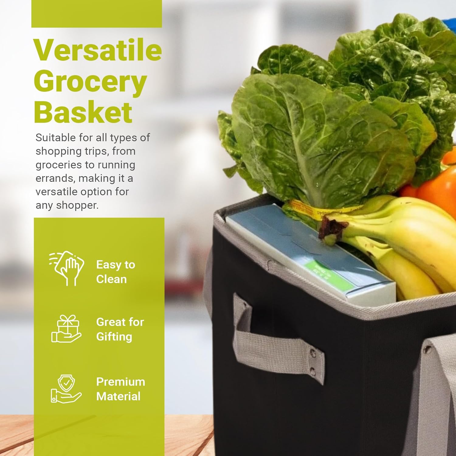 VERSATILE GROCERY BASKET: Suitable for all types of shopping trips, from groceries to running errands. Great for gifting and comes in 6 stylish colors to choose from.