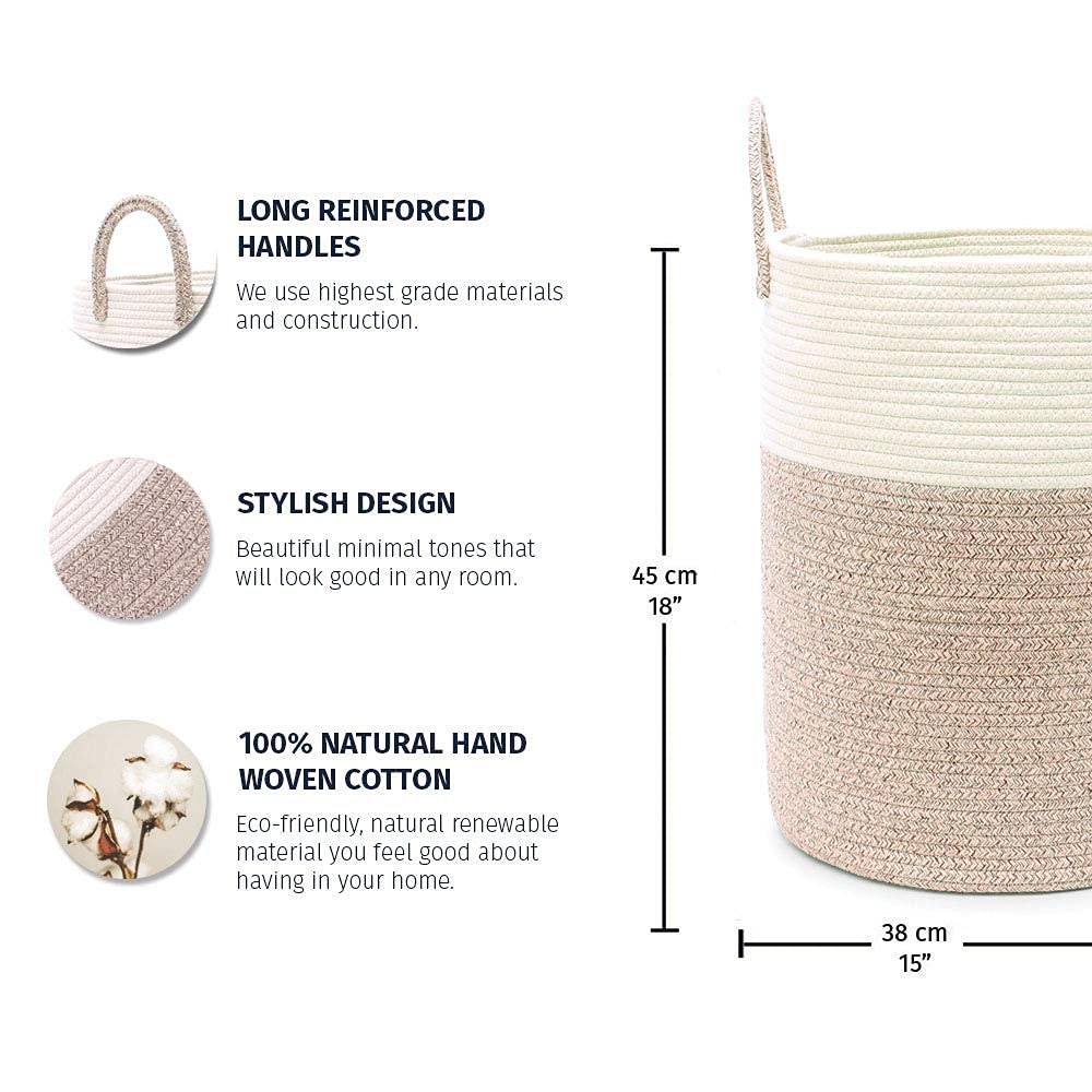 Soft Yet Durable Cotton Rope: This premium woven laundry basket is crafted from cotton, no chemicals, no plastics. Safe for children and pets, with a soft texture that won’t scratch floors or hands.