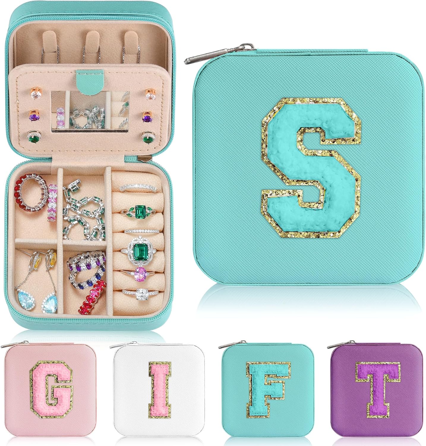 Parima Bridesmaid Gifts for Wedding Day, Bridesmaid Gifts for Women | Bridesmaid Proposal Gifts Unique Gifts | Wedding Travel Essentials Small Jewelry Box | Travel Jewelry Case – Letter S, Aqua Blue