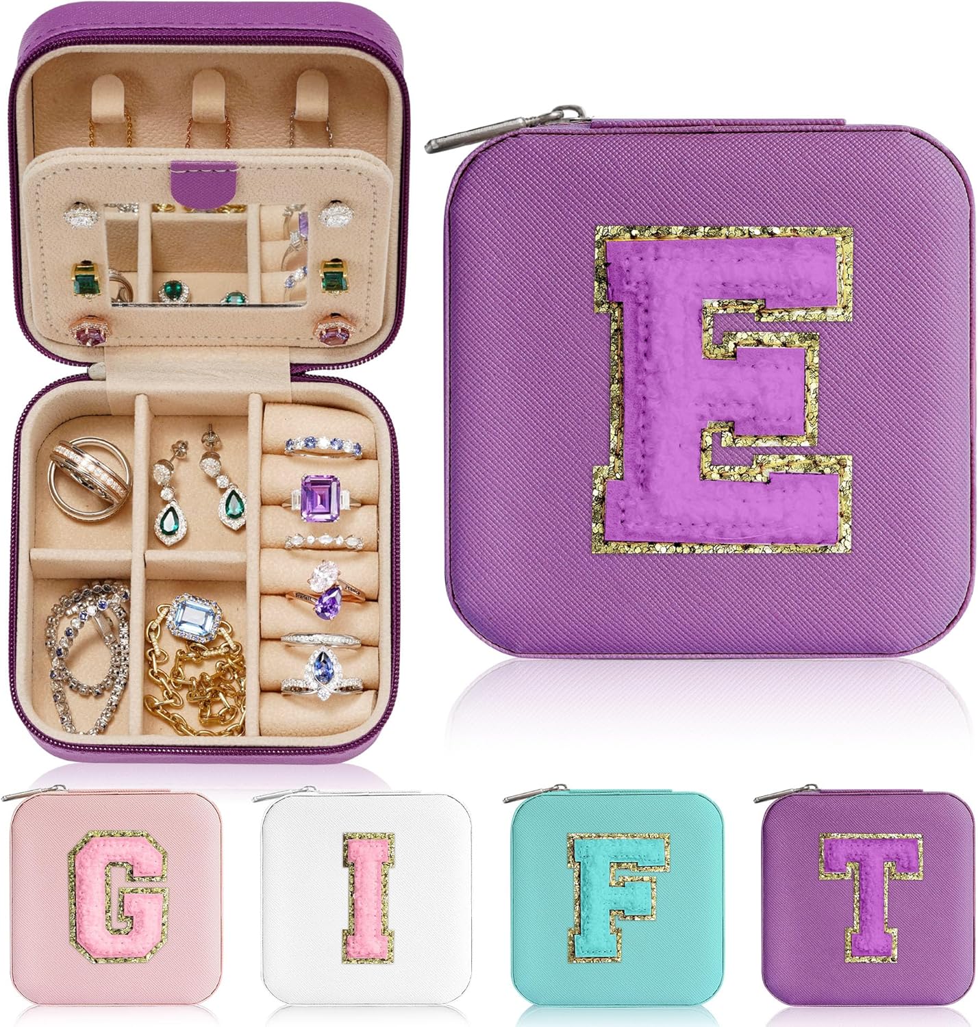 Customers find the jewelry box perfect for pre-teens and travel, noting it fits well in purses and doesn’t take up much room. Moreover, the product receives positive feedback for its appearance, with customers saying it looks just like the product pictures, and one mentioning its sharp monogram. Additionally, the box is well-made with a sturdy zipper, makes a great gift, particularly for 10-year-olds, and offers good value for money. Customers appreciate the color options, with one highlighting the pink monogram letter.