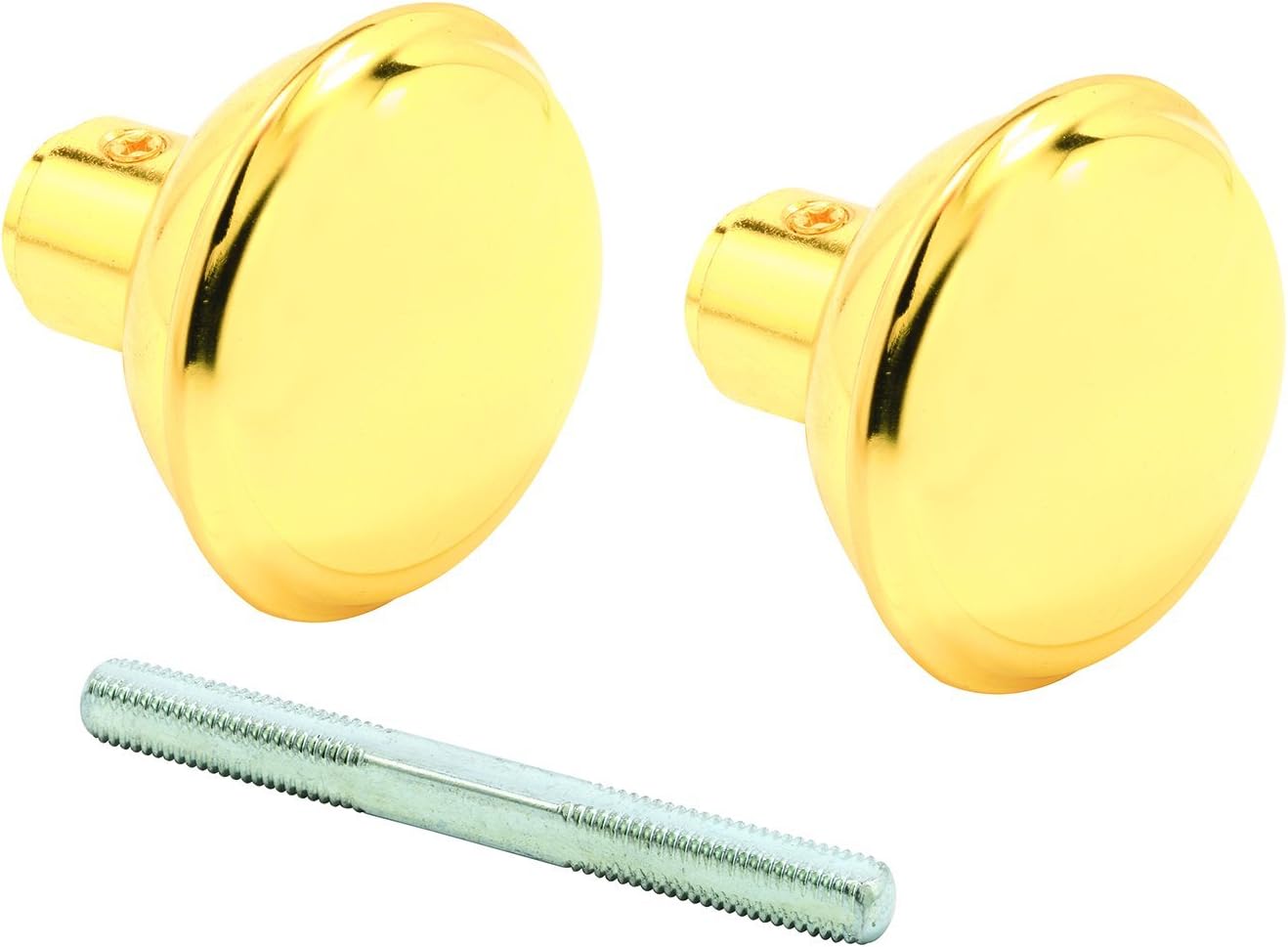 These vintage style door knobs are constructed of SOLID BRASS and come in a bright polished-brass finish. This set of knobs is designed for indoor use only, and it includes a 17/64 inch x 3-1/2 inch steel spindle with 3/8 inch -20 threads. This classic style knob set fits square drive spindle systems commonly found in antique and vintage door hardware sets, and it can adjust to accommodate different door thicknesses. The shanks on these knobs include 2 set screws (per shank) for fastening the knobs to the square spindle, but it does NOT include any of the following components and they must be purchased separately: The internal mortise lock body, door rosettes, trim and strike plates, or the latch and fasteners. For brass plated stamped steel knobs, kindly see Prime-Line part E 2280. Note: This item cannot be used on pre-bored doors that have large, newer style door knob holes without first prepping them to receive this hardware. Installation tip #1: Because the fasteners of the rosettes (purchased separately) require a solid surface to mount to, the large 2-1/8 inch (approximate size) holes must first be filled with a hardening filler, to then be able to receive the rosette fasteners. Products like Fix-It-All® and Bondo Body Filler® have worked well for some, but care must be used to avoid damaging any prefinished door surfaces during application and finishing. Installation tip #2: Apply a small amount of Loctite ThreadLocker 271® to the set screw threads in the event they are loosening – Loctite® purchased separately.