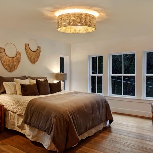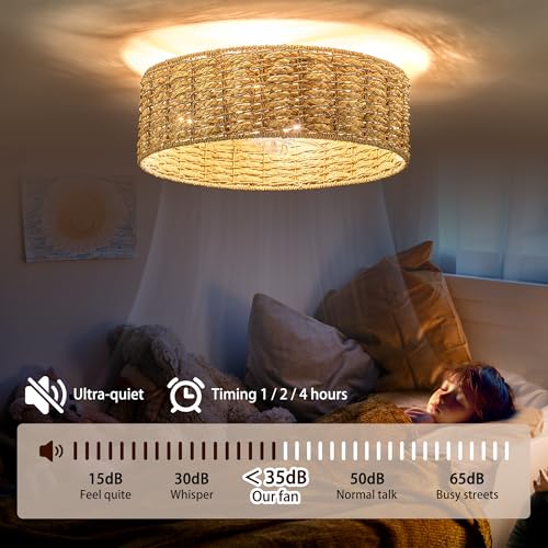 Handwoven rattan ceiling fan:This boho ceiling fan with light features made of hand-woven rattan ,which is natural and environmentally friendly,The rattan ceiling fan with light Great for Casual, Bohemian, Eclectic, Nautical, Coastal, Rustic, Farmhouse to traditional style decor,perfect in your bedroom ceiling fans,living room,kitchen ,ect