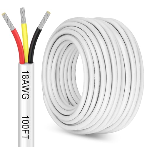 Specification: 100FT 18 Gauge 3 Conductor Electrical Wire,18/3 Low Voltage Landscape Wire, 18 AWG Stranded Tinned Copper 3 Wire Cable for LED Lighting Strips Automotive Marine, White