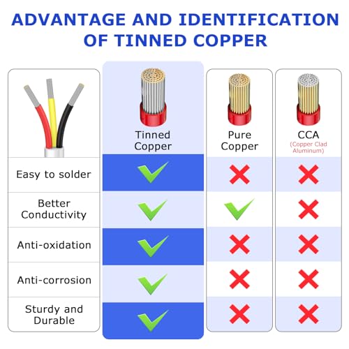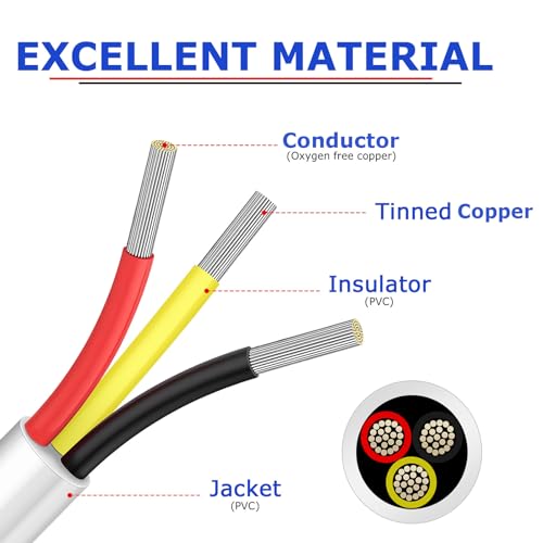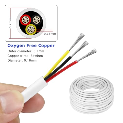 High Conductivity: The 18 awg strands 3 Core wire: Black&Red&Yellow, 34 strands of 0.16 mm tinned copper wire are inside each core; Wire outer diameter: 5.7mm. Compared with aluminum materials, Electrical Wire has lower resistance and higher conductivity