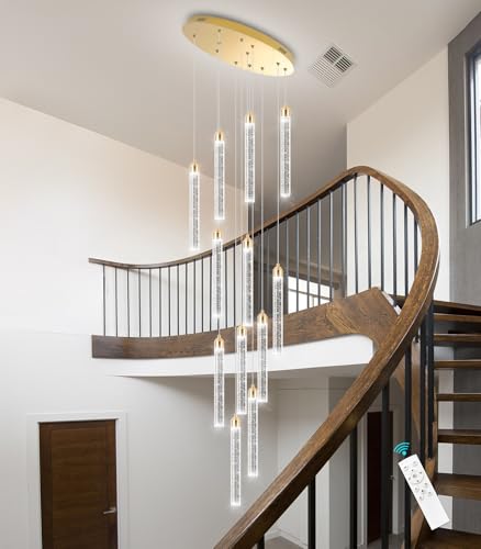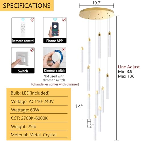 Specification: 12-Lights Chandelier LED Dimmable Chandeliers for Entryway Flush Mount Ceiling Pendant Light Fixture Crystal Chandeliers for Living Room Gold Finished Lighting Modern High Ceiling Chandelier