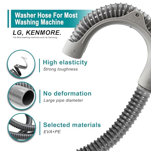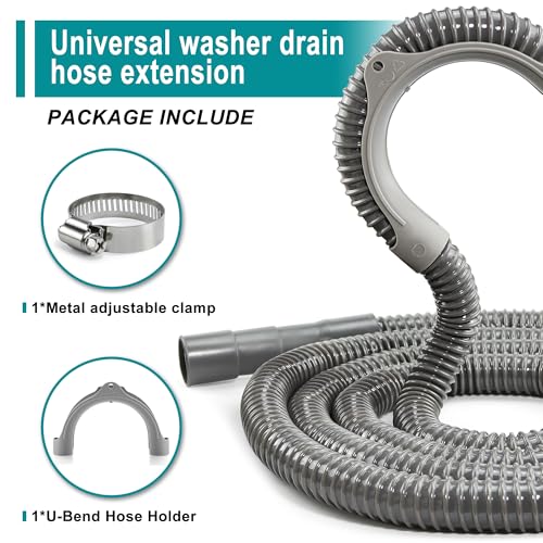 Specification: [12ft]Universal Washing Machine Drain Hose Flexible Extension Hose with Clamp, Industrial Grade Polypropylene Corrugated,Fit for Most Household Washing Machines(10-Years Warranty)