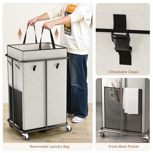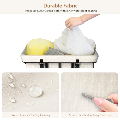 【Removable Laundry Bag】The laundry bag is made of durable 600D Oxford cloth, designed to withstand long-term use without tearing or damage. The included clasps securely attach the bag to the frame, and its removable design allows you to easily transport your dirty clothes hamper to your bedroom, bathroom, or laundry room. The bag features a waterproof coating—wipe clean with a cloth, but please avoid machine washing.