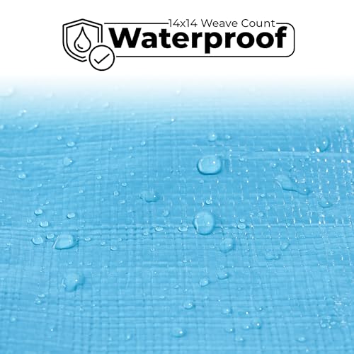16×20 Heavy Duty Tarp Waterproof – 12mil Thick Pool Tarp Cover – 16×20 Tarp UV Resistant, Rip & Tear Proof with Metal Grommets – Blue Tarp Multipurpose Use for Camping, Tent, Boat, RV, Car