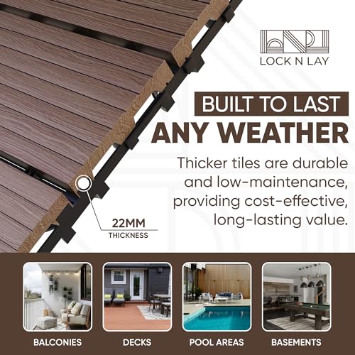 READY FOR REGULAR USE: Our outside flooring tiles are crafted from a durable wood plastic composite, which can deal with quite a lot of footsteps and activity. Unlike traditional Outside patio tiles, these snap together deck tiles won’t rot, bend, or break into pieces through the years