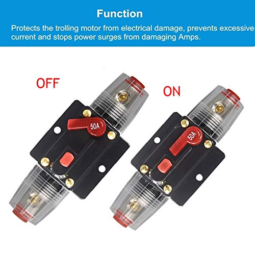Specification: 30A 40A 50A 60A 80A 100A 150A Audio Circuit Breaker Auto Car Stereo Inline Fuse Holders Inverter, Manual Reset 12V-24V DC for Automotive Marine Boat Audio System Protection (50A)