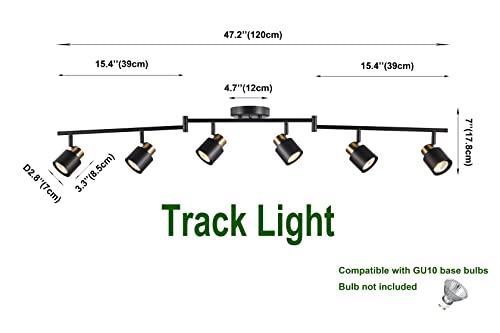 Specification: 6 Light Foldable Track Lighting Kit, Matt Black Brass Finish Adjustable with Moden Flush Mount Ceiling Spotlight for Kitchen,Dining,Living Room,Home Improvement