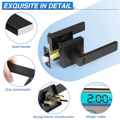 Specification: 6 Pack Matte Black Door Handles, Keyless Interior Door Knobs, Privacy Door Lever Locksets for Bedroom Bathroom, Heavy Duty Square Door Lock (2.0lb), Reversible for Left&Right Handled Doors