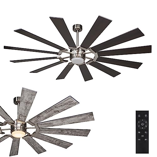 72 Inch 12 Blades Indoor Ceiling Fan with Light and Remote, Reversible DC Silent Motor, 110V ETL Listed for Living Room, Dining Room, Bedroom, Basement, Kitchen, Brushed Nickel