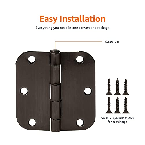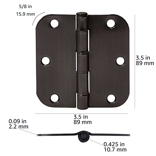 Specification: Amazon Basics Rounded 5/8 Radius Interior Door Hinges, 18 Pack, Oil Rubbed Bronze, 3.5″ x 3.5″