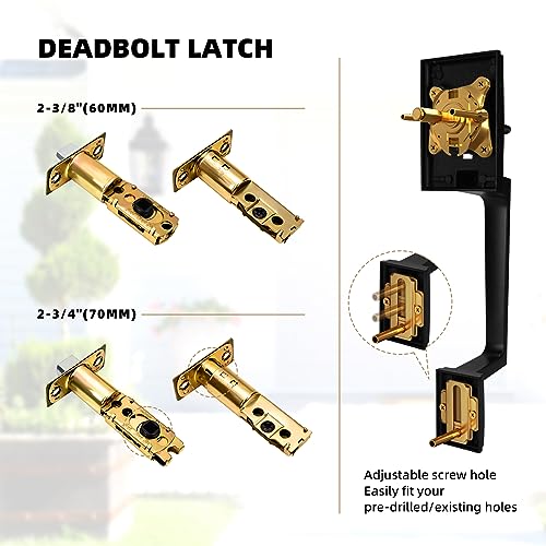 【Reversible Handle Lever & Adjustable Latches】The 4-3/4 Inch handle lever is reversible for right and left handed side of exterior doors. The length of the door latch can be adjusted from 60mm to 70mm(2-3/8 to 2-3/4 inch).
