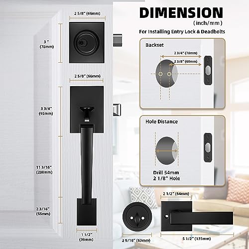 【Safety & Convenience】This exterior door lock set comes with a single cylinder deadbolt that may be opened by an exterior key, and have a safe lock inside, which provides dependable, security for your home. The black front door Deal with and deadbolt set includes all of the necessary hardware components you want for a very easy installation, including an installation instruction.