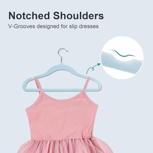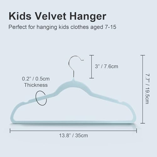 Specification: Baby Velvet Hangers, 14 Inches Kids Clothes Hangers, Non-Slip Childrens Hangers for Shirts, Pants, Skirts, Dresses, Jackets, Coat, 32 Pack Blue