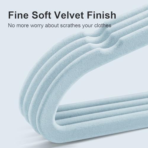 Baby Velvet Hangers, 14 Inches Kids Clothes Hangers, Non-Slip Childrens Hangers for Shirts, Pants, Skirts, Dresses, Jackets, Coat, 32 Pack Blue