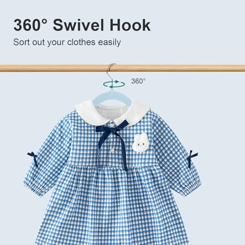 FLOCKED VELVET FINISH – Fine soft velvett finish on the kids hangers, very soft finish to prevent your chilrdren’s clothes from scratches, also protect your chilrdren’s clothes from slipping off from hangers. 360° degrees swivel hooks allowing you to sort out your clothes from any angles in your closet easily.