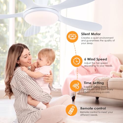 Specification: Ceiling Fan with Light-46 White Low Profile Ceiling Fans with Light and Remote/APP, LED Dimmable,6 Speeds and Quiet Reversible DC Motor Modern Flush Mount Ceiling Fan for Bedroom Living Room