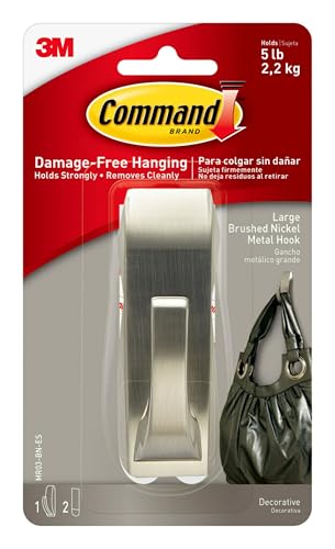 Specification: Command Large Modern Reflections Metal Hook, Brushed Nickel, 1-Hook, 2-Strips, Decorate Damage-Free