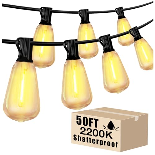 DAYBETTER Outdoor String Lights 50FT Waterproof LED Edison Outside Lights, 2200K 17 Shatterproof ST38 Bulbs, Hanging Umbrella Lights for Garden Camping Patio Porch Backyard Deck Balcony