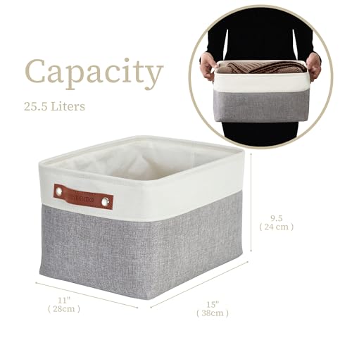 Specification: DECOMOMO Storage Bins | Fabric Storage Baskets for Shelves for Organizing Closet Shelf Nursery Toy | Decorative Large Linen Closet Organizer Bins with Handles (Grey and White, Large – 3 Pack)